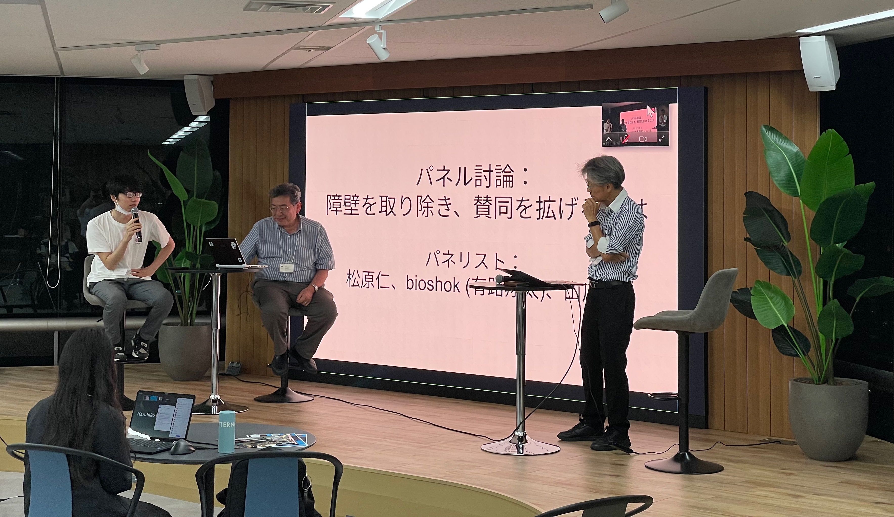 それぞれ講演を行った山川氏と松原氏、そこにAIリスクに関する情報発信を行うbioshok氏を加えた3名が登壇したパネルディスカッションでは、「障壁を取り除いて、賛同の輪を拡げるには」をテーマに活発な議論が交わされた。
